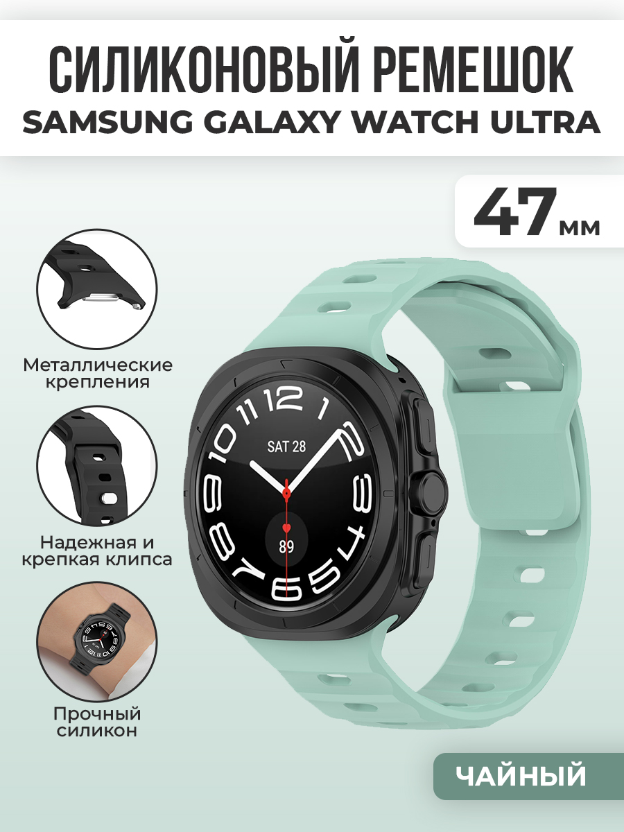 Силиконовый ремешок для Samsung Galaxy Watch Ultra, 47 мм — это идеальный аксессуар для тех, кто ищет комфорт и стиль в одном решении. Этот ремешок для Samsung Galaxy Watch Ultra выполнен из высококачественного гипоаллергенного силикона, что гарантирует безопасность даже для чувствительной кожи и комфорт во время повседневной носки. Благодаря своим характеристикам, этот браслет на Samsung Galaxy Watch Ultra, 47 мм подходит для занятий спортом, фитнесом и активного отдыха, а также для повседневного использования.