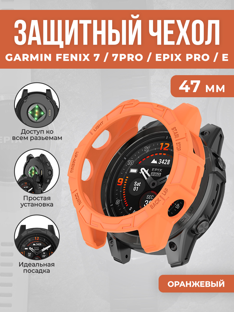 Защитный чехол для Garmin Fenix 7 (Pro), Epix Pro, Fenix E, 47 мм, оранжевый