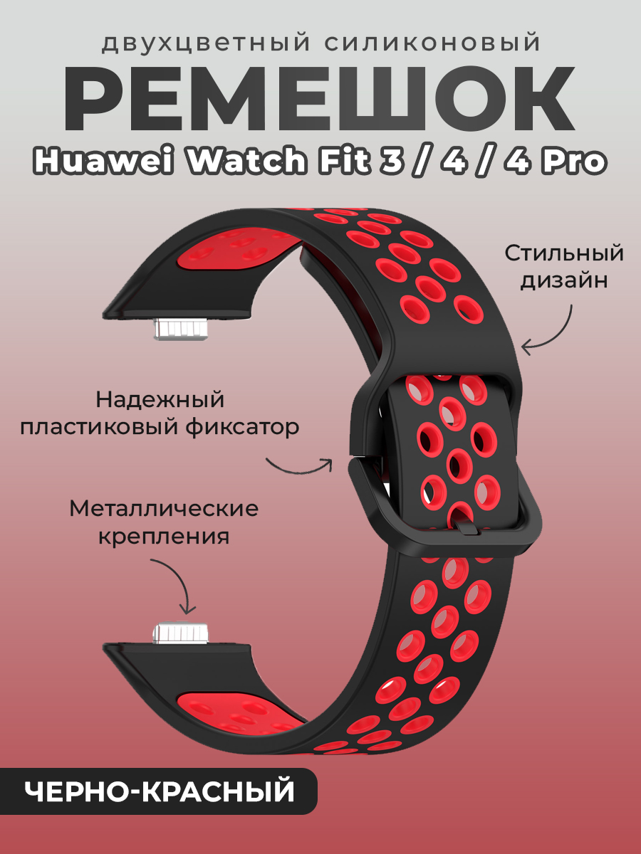 Двухцветный силиконовый ремешок для Huawei Watch Fit 3/4/4 Pro, черно-красный