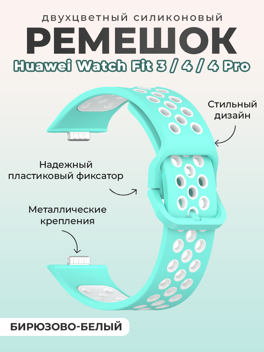 Двухцветный силиконовый ремешок для Huawei Watch Fit 3/4/4 Pro, бирюзово-белый