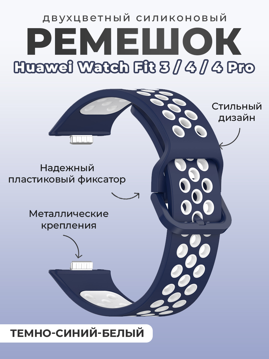 Двухцветный силиконовый ремешок для Huawei Watch Fit 3/4/4 Pro, темно-синий-белый