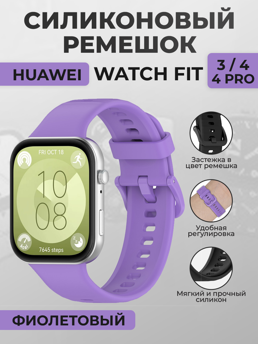 Силиконовый ремешок для Huawei Watch Fit 3/4/4 Pro, с цветной застежкой, фиолетовый