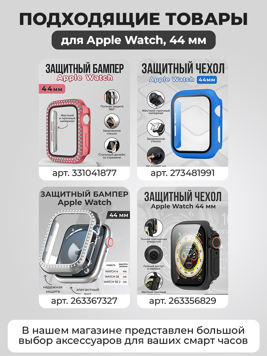 Позвольте представить вам «Жесткий защитный бампер со стразами для Apple Watch, 44 мм» — идеальное решение для тех, кто ищет совмещение стиля и защиты для своего устройства. Чехол для часов Apple Watch series 4/5/6/SE/SE 2/SE 3 с размерами циферблата: 44 мм. Этот защитный бампер Apple Watch наилучшим образом сочетает в себе функциональность и эстетическую привлекательность, обеспечивая вашу технику надежной защитой от ударов и царапин.