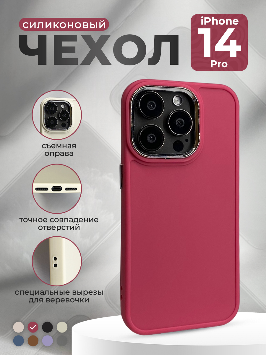Силиконовый чехол со съемной оправой камеры для iPhone 14 Pro, ярко-розовый