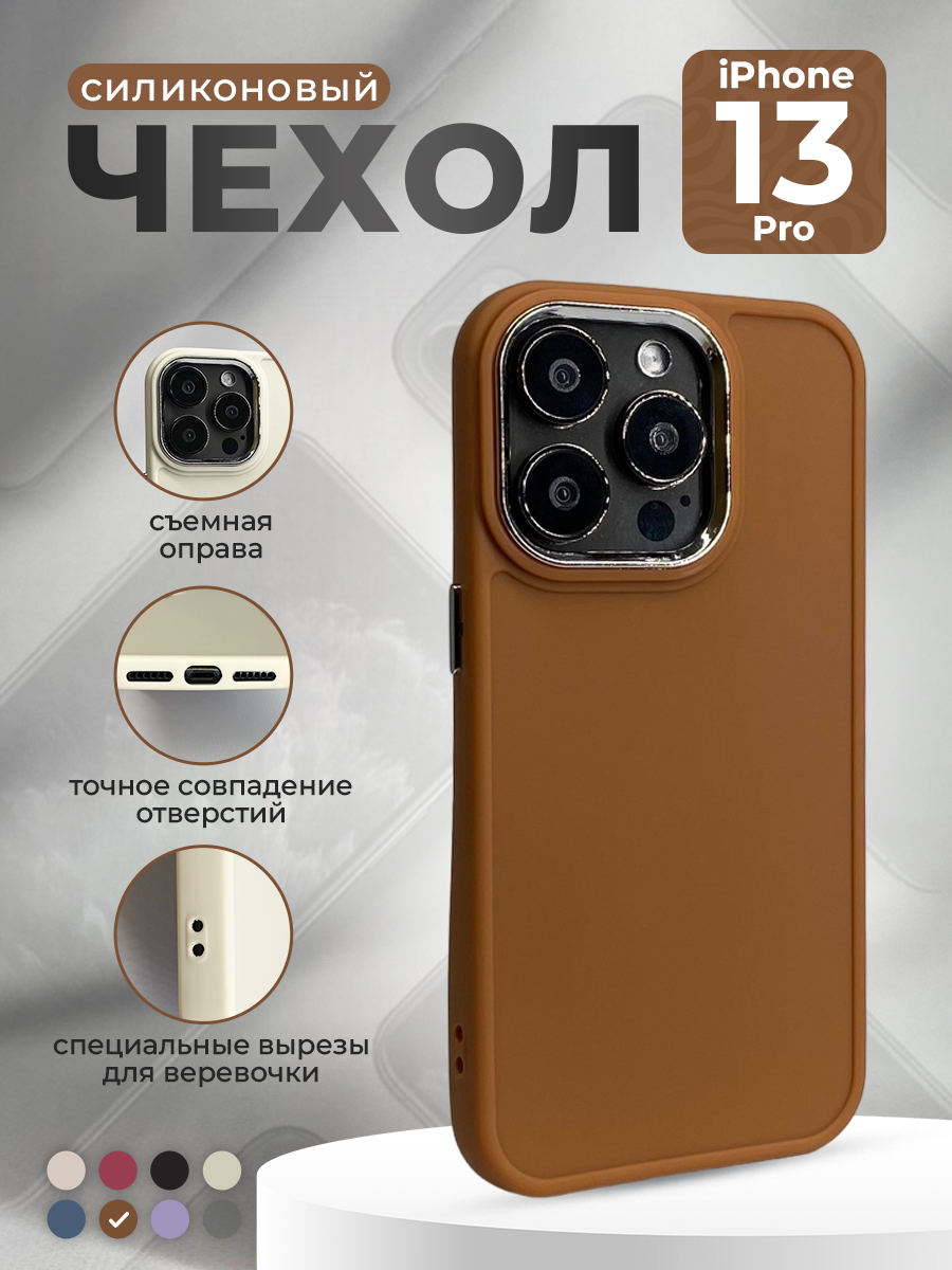 Силиконовый чехол со съемной оправой камеры для iPhone 13 Pro, коричневый