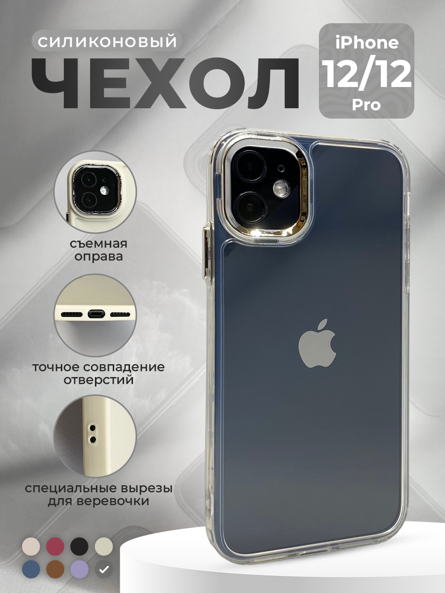 Силиконовый чехол со съемной оправой камеры для iPhone 12/12 Pro, прозрачный