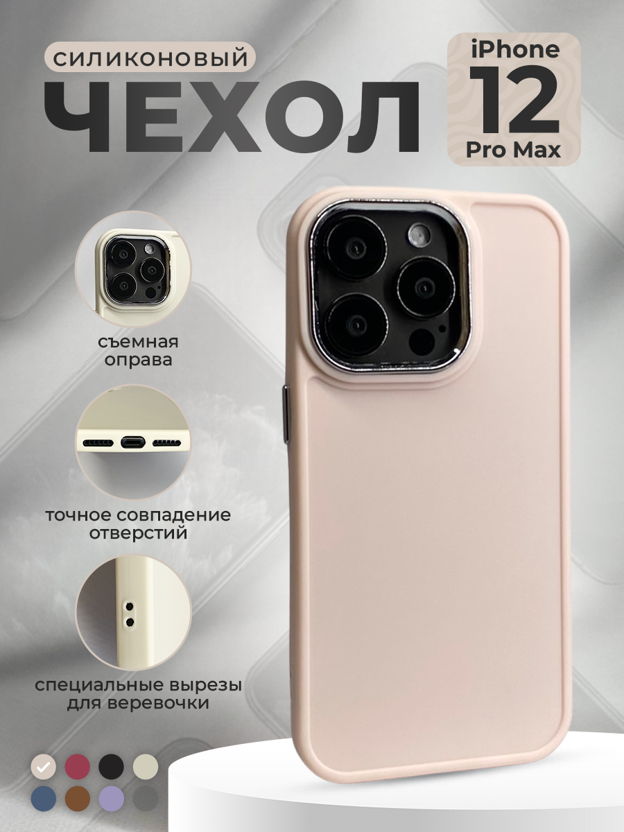Защитите свой iPhone 12 Pro Max с помощью нашего стильного и практичного силиконового чехла со съемной оправой камеры. Этот чехол обеспечивает надежную защиту вашего устройства от царапин, ударов и пыли, сохраняя его идеальное состояние.