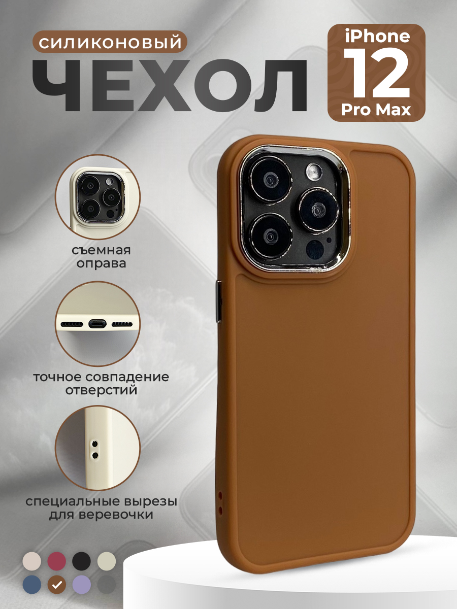 Силиконовый чехол со съемной оправой камеры для iPhone 12 Pro Max, коричневый