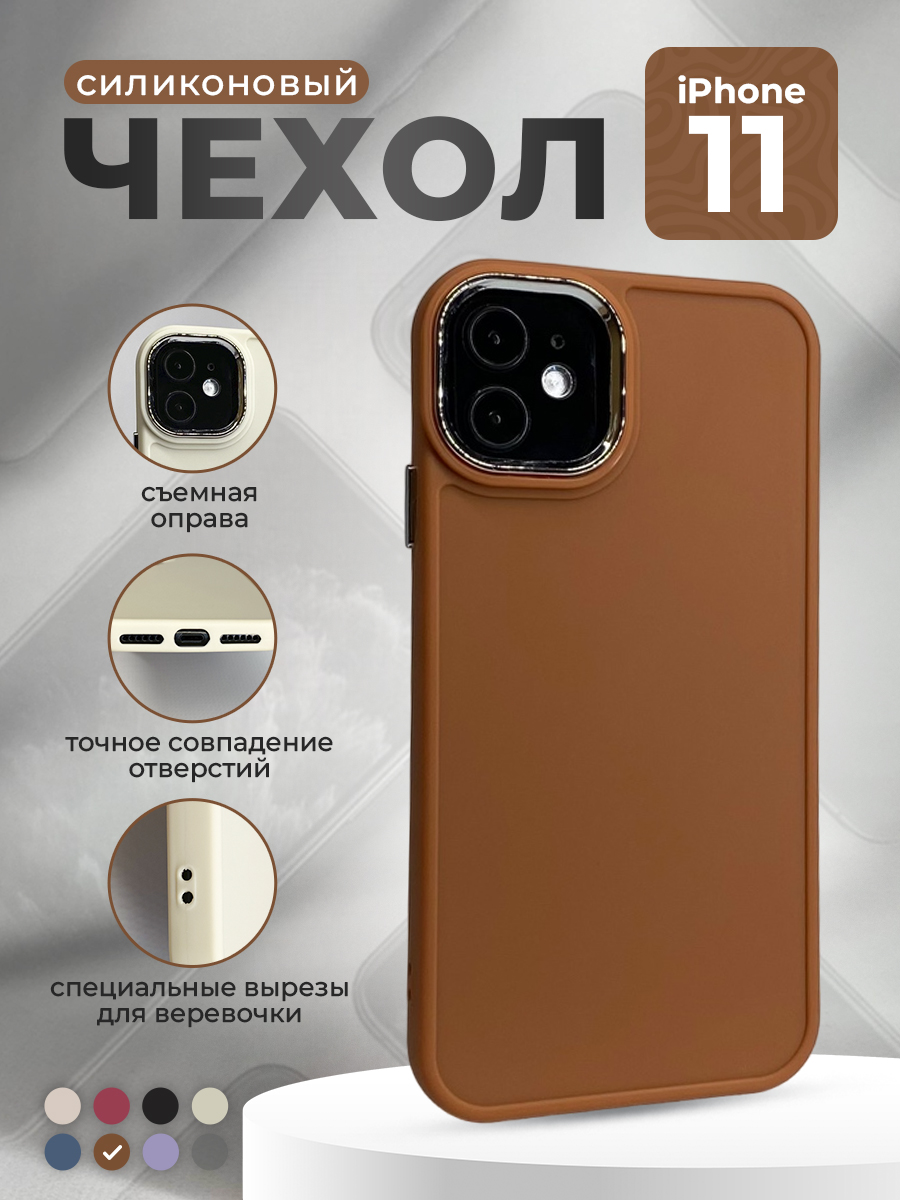 Силиконовый чехол со съемной оправой камеры для iPhone 11, коричневый
