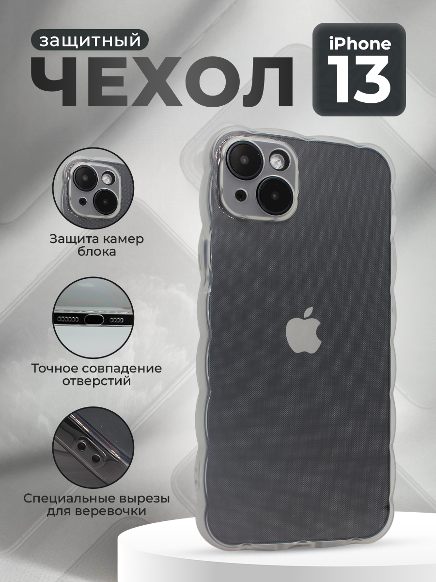 Мягкий чехол с большой волной для iPhone 13, прозрачный