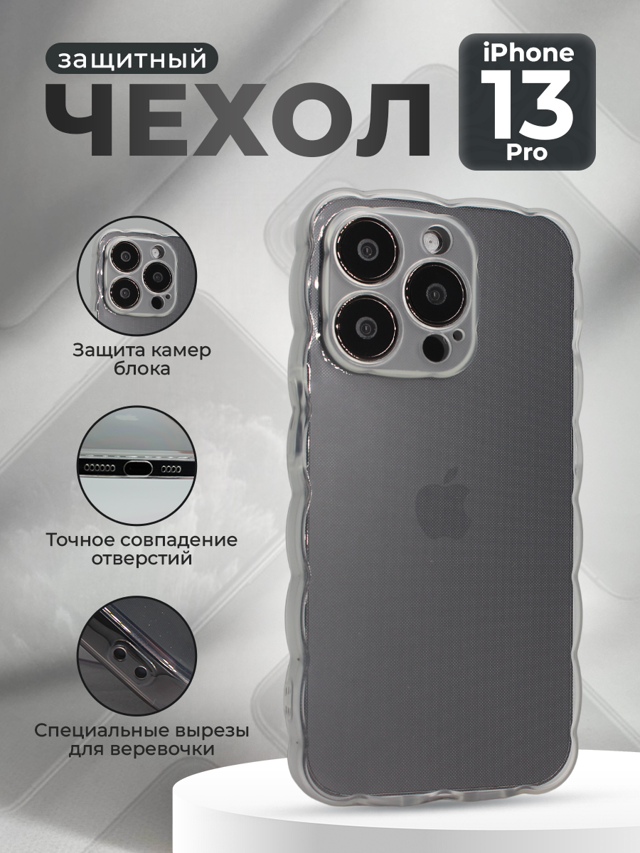 Мягкий чехол с большой волной для iPhone 13 Pro, прозрачный