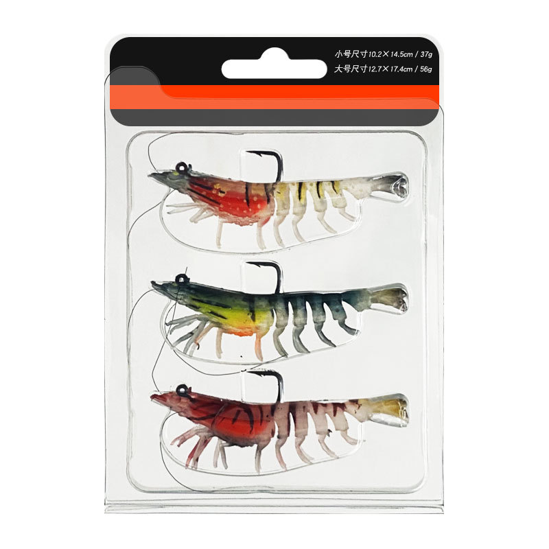 Набор мягких рыболовных приманок Shrimp, длиной 12 см и весом 20 г, представляет собой крупную реалистичную имитацию креветки, выполненную из мягкого силикона и оснащённую встроенным крючком. Приманка обладает светящимся эффектом, который значительно повышает её заметность в воде и делает особенно эффективной при ловле в тёмное время суток, на глубине, а также в условиях мутной воды и слабого освещения. Детализированная форма тела, сегментированная структура, лапки и усики создают естественную игру при падении и проводке, максимально точно имитируя движения живой креветки. Маркировка Shrimp указывает на принадлежность приманки к классу имитаций ракообразных, предназначенных для морской и солоноватоводной ловли. За счёт большого собственного веса и наличия крючка приманка имеет тонущую плавучесть (S – Sinking) и быстро достигает рабочего горизонта, стабильно удерживаясь в придонных слоях воды. Такая характеристика делает её оптимальным выбором для целенаправленной ловли донной и придонной рыбы. Приманка предназначена для ловли камбалы, трески, морского окуня, луфаря, ставриды, групера, бычков и других морских хищных и полухищных видов, активно питающихся креветками и другими ракообразными. Благодаря увеличенному весу приманка эффективно работает на глубинах от 1,5 до 8 метров, позволяя облавливать как прибрежные участки, так и более глубокие зоны с течением. Мягкая структура силикона обеспечивает реалистичную анимацию даже при медленной проводке, а светящийся эффект дополнительно провоцирует рыбу на атаку. Светящаяся мягкая приманка Shrimp сочетает в себе крупный размер, высокую заметность, стабильную тонущую плавучесть и удобство использования, обеспечивая точный контроль глубины и уверенный результат при морской рыбалке в самых разных условиях.