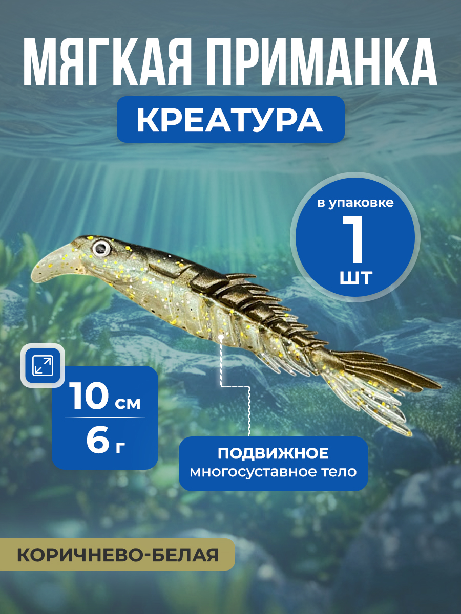 Рыболовная двухцветная, мягкая приманка Creature Bait, имитация многосуставной кости с хвостом-ножницами, 10 см/6 г, 1 шт, коричнево-белая