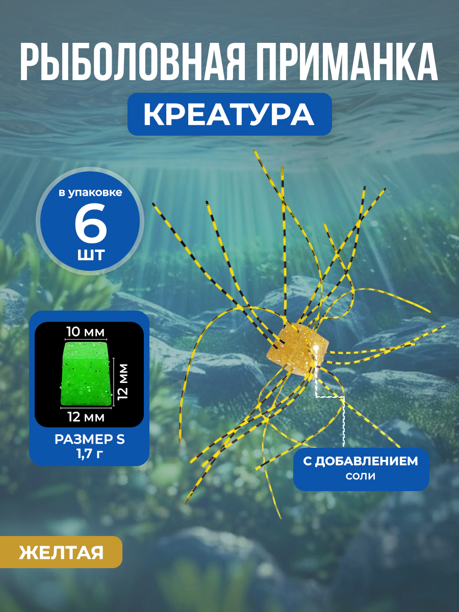 Рыболовная медленно тонущая приманка Creature Bait/Dice Bait, имитация игральных костей, мягкая, 1,7 г/размер S, 6 шт, желтая