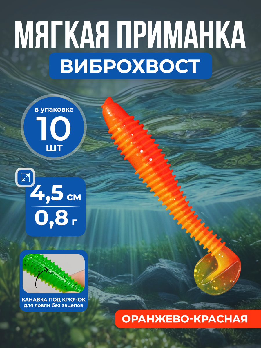 Рыболовная мягкая приманка Swimbait / Paddle T-Tail Grub с Т-образным хвостом и винтовым креплением для пресноводной и морской рыбалки, 4,5 см/0,8 г, 10 шт, оранжево-красная