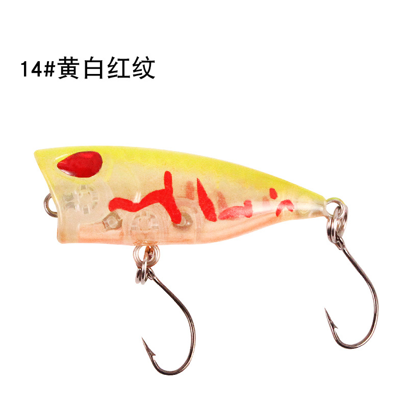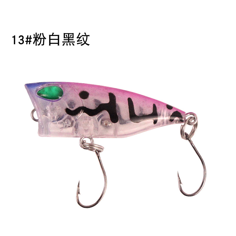 Воблер микропоппер 4 см/3,3 г — это компактная жёсткая поверхностная приманка, созданная для деликатной ловли хищной рыбы в стиле finesse. Вид приманки — Micro Popper / Hard Topwater Lure (жесткий поверхностный микропоппер). Модель оснащена характерной чашеобразной выемкой в носовой части, благодаря которой при коротких рывках и лёгком твичинге приманка создаёт чёткие «плюхи», брызги и акустические колебания, имитируя кормление малька на поверхности. Особенностью конструкции являются крючки в форме пасти, обеспечивающие надёжную подсечку и хорошее удержание рыбы при поклёвке. Небольшой размер 4 см и вес 3,3 г позволяют выполнять точные забросы лёгкой снастью и аккуратно подавать приманку в прибрежную зону, к кромке травы или в небольшие «окна» среди растительности. Тип плавучести — Floating (F) / Плавающая, что гарантирует стабильное положение на поверхности воды без заглубления. Минимальная рабочая глубина составляет 0 м — приманка работает непосредственно на поверхности, максимальная — до 0,2 м при активной анимации, когда она кратковременно подныривает под плёнку воды. Микропоппер эффективен для ловли окуня и мандариновой рыбы, особенно в тёплый сезон, когда хищник активно кормится в верхних слоях. Он подходит для рыбалки на мелководье, в стоячей воде и на слабом течении. Благодаря компактности, реалистичной игре и поверхностному шумовому эффекту приманка провоцирует даже осторожную рыбу на атаку, обеспечивая зрелищную и результативную ловлю.