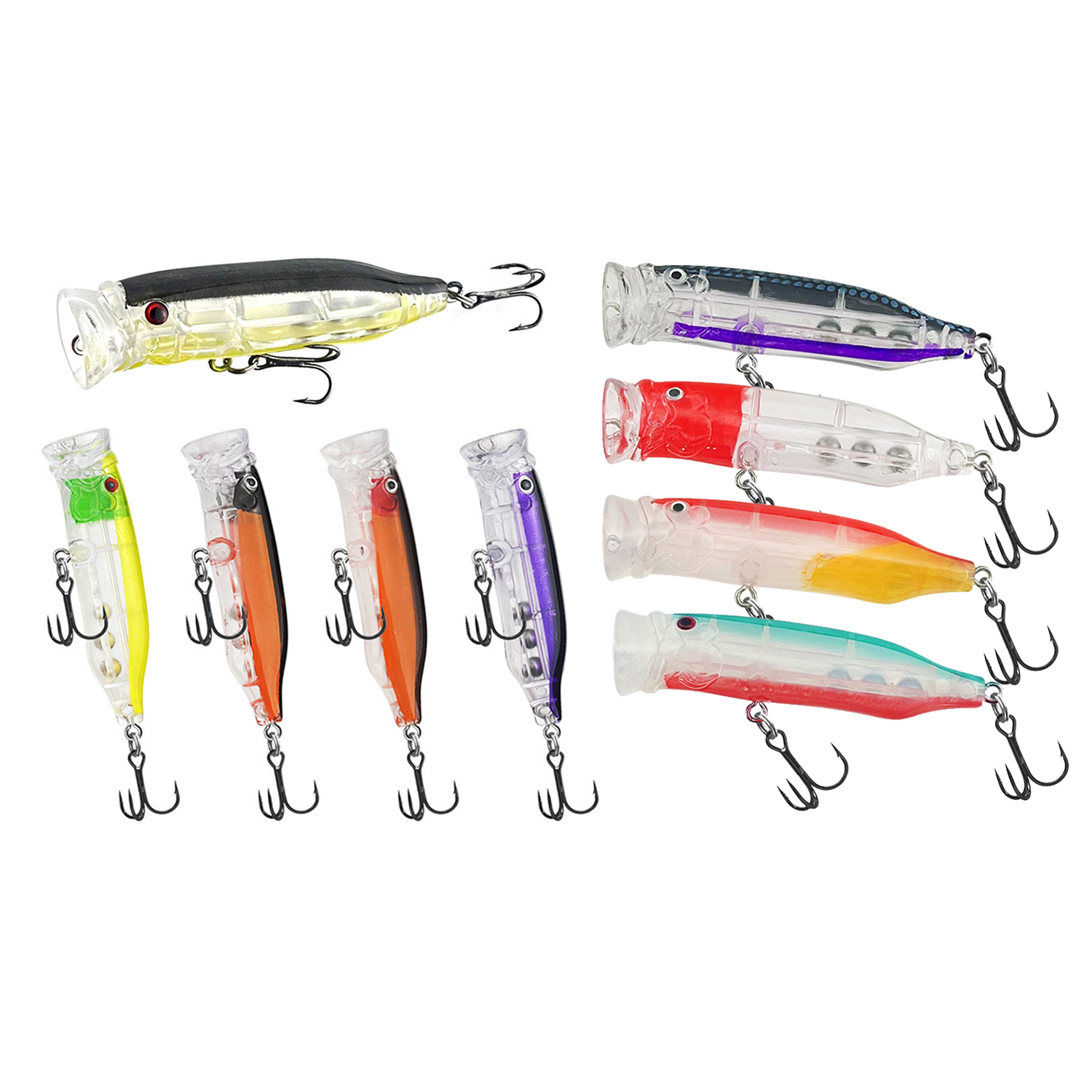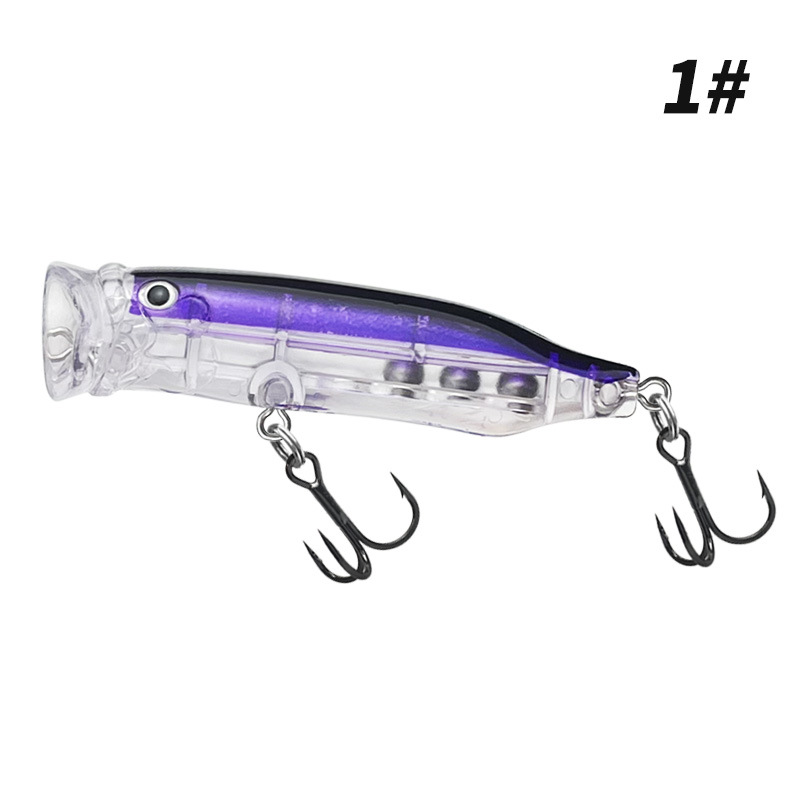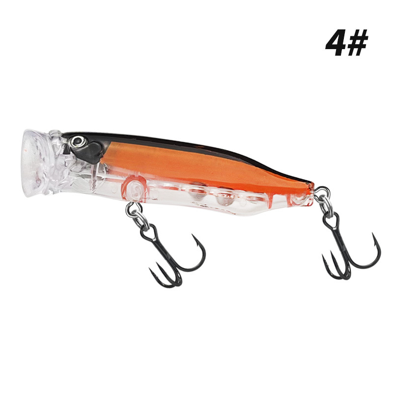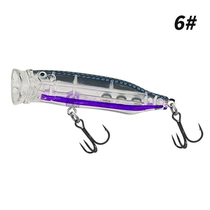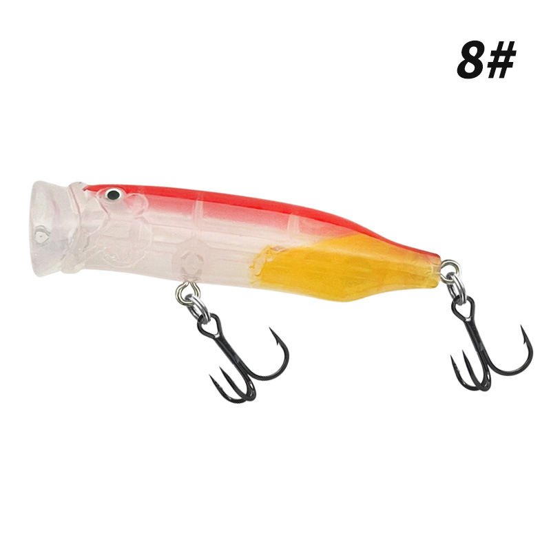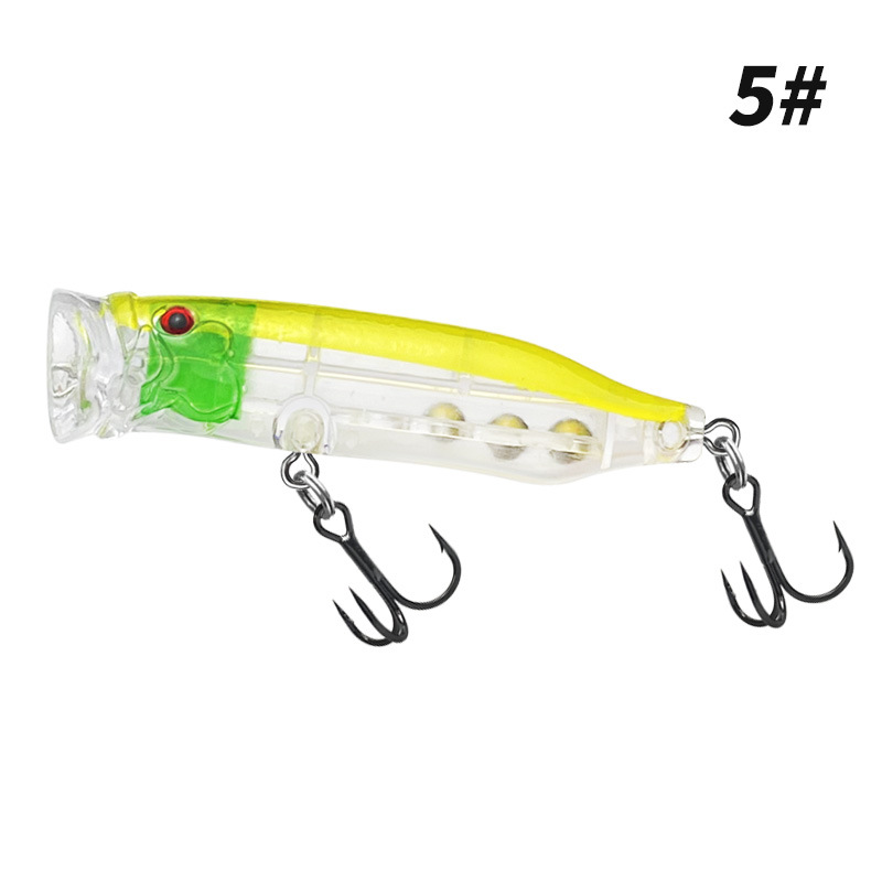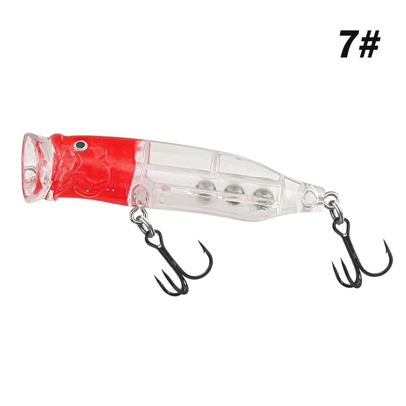 Рыболовный воблер поппер, прозрачная плавающая приманка Big Splash, для дальнего заброса с тройными крючками и погремушкой, 7 см/9 г, прозрачно-красно-зеленый