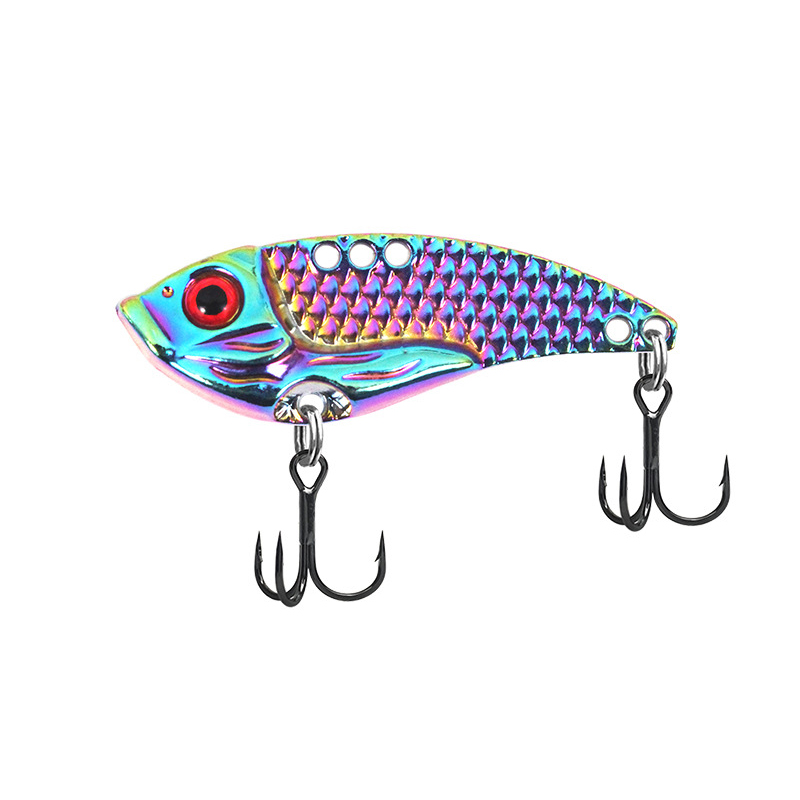 Набор рыболовных металлических виб-приманок, блесен цикада 3,5 см/5 г — это компактная и высокочастотная приманка для активной ловли хищной рыбы в пресной и солёной воде. Вид приманки — VIB (Blade Bait) / Cicada Lure (вибрационная блесна цикада). Корпус выполнен из прочного металла с детализированной имитацией рыбьей чешуи, что усиливает световые блики и делает игру более заметной даже в мутной воде. Оснащена усиленным тройным крючком №14 из высокоуглеродной стали 6062 с покрытием из чёрного никеля, обеспечивающим повышенную прочность, коррозионную стойкость и надёжную подсечку. Двойное заводное кольцо из нержавеющей стали повышает износостойкость и выдерживает резкие рывки рыбы. На спинке расположены три отверстия для крепления лески, позволяющие регулировать характер игры: переднее создаёт более плавные и умеренные вибрации, среднее — универсальную стабильную игру, заднее — максимально агрессивные высокочастотные колебания. Дополнительно два отверстия на хвостовой части позволяют тонко настраивать баланс и амплитуду движений. Тип плавучести — Sinking (S) / Тонущая, что обеспечивает быстрое погружение и эффективную работу на глубине. Минимальная рабочая глубина составляет около 0,5–1 м, максимальная — до 8–12 м в зависимости от условий ловли и скорости проводки. Приманка подходит для ловли окуня, судака, щуки, жереха и форели, эффективно работает при равномерной, ступенчатой и вертикальной проводке, создавая мощные вибрации и привлекая хищника с большого расстояния.