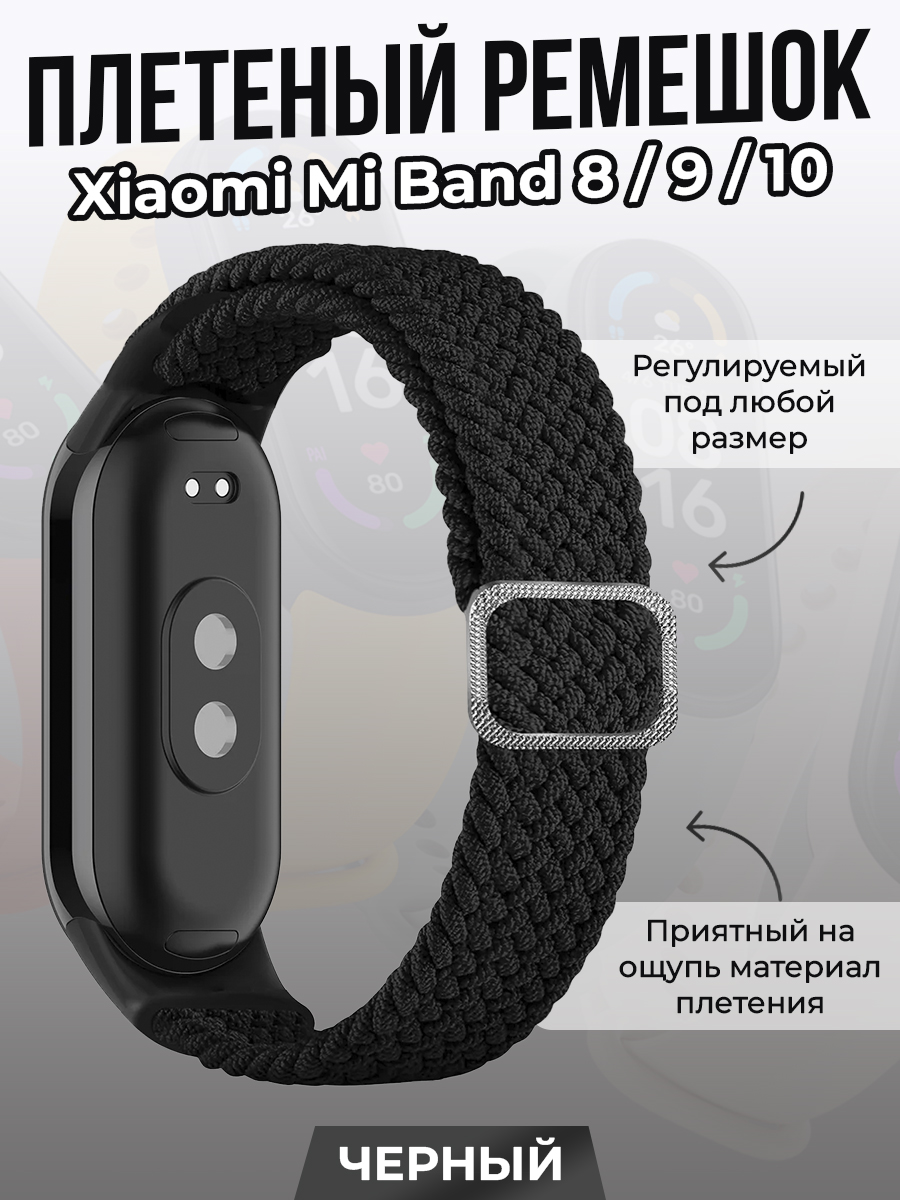 Плетеный ремешок для Xiaomi Mi Band 8/9/10, регулируемый под любой размер, черный