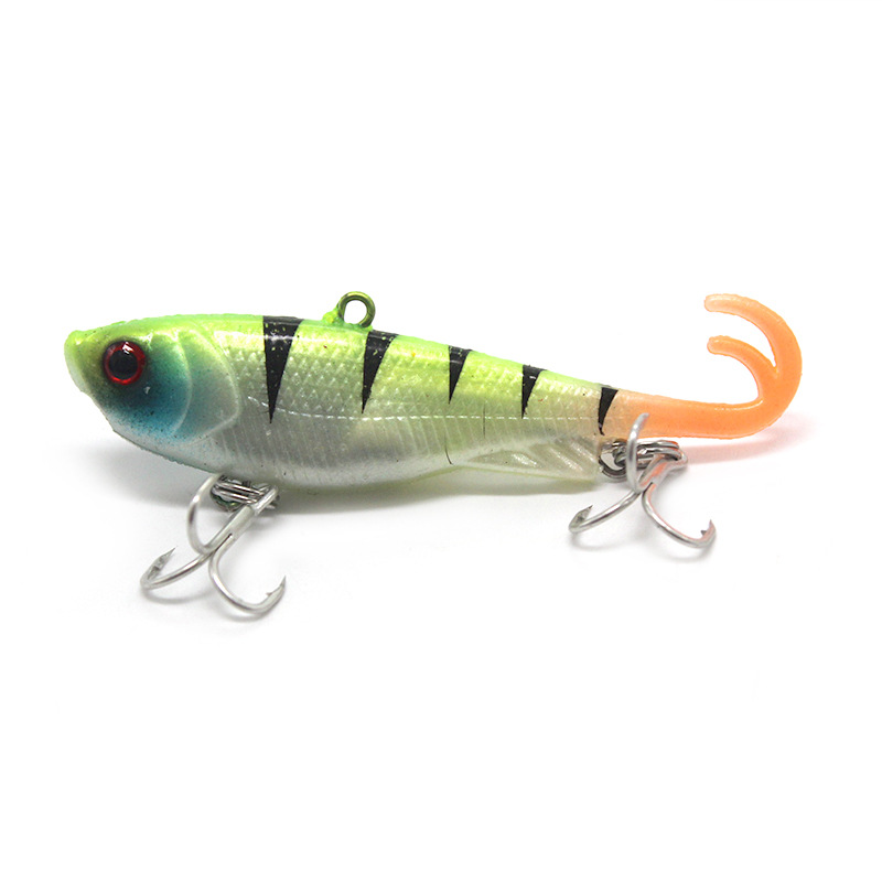 Рыболовная утяжеленная мягкая приманка VIB с закрученным хвостом, 6,5 см/13 г, предназначена для эффективной ловли хищной рыбы в пресной воде. Вид приманки — VIB (Vibrating Lure) / Soft VIB Lure с закрученным хвостом, сочетает в себе свойства вибрационной приманки и мягкого свимбейта, что обеспечивает реалистичную игру в воде и привлекает даже осторожную рыбу. Корпус приманки выполнен из высокоэластичного материала с утяжелением, что позволяет делать дальние забросы и быстро достигать рабочей глубины. На поверхности мягкой приманки имитация чешуи создаёт визуальный эффект настоящей рыбы, а 3D рыбий глаз усиливает реалистичность и привлекает хищника с дальнего расстояния. Конструкция оснащена прочным тройным крючком и двойным заводным кольцом для надежной подсечки и удержания рыбы. Тип плавучести — Sinking / Тонущая, что позволяет приманке уверенно опускаться к нужной глубине и работать на различных горизонтах. Минимальная рабочая глубина составляет примерно 0,5–1 метр, максимальная — до 6–8 метров в зависимости от скорости проводки и условий водоёма. Приманка идеально подходит для ловли окуня, судака, щуки и мандариновой рыбы, показывая высокую эффективность при равномерной, ступенчатой или вертикальной анимации. VIB-приманка с закрученным хвостом создаёт характерные колебания и вибрацию в воде, имитируя движение раненой или кормящейся рыбы, что провоцирует активную атаку хищника. Эффектное сочетание мягкого тела, утяжеления и реалистичной игры делает эту приманку универсальным инструментом для пресноводной рыбалки, позволяя охватывать средние и глубокие горизонты и успешно ловить различные виды хищной рыбы в любое время года.