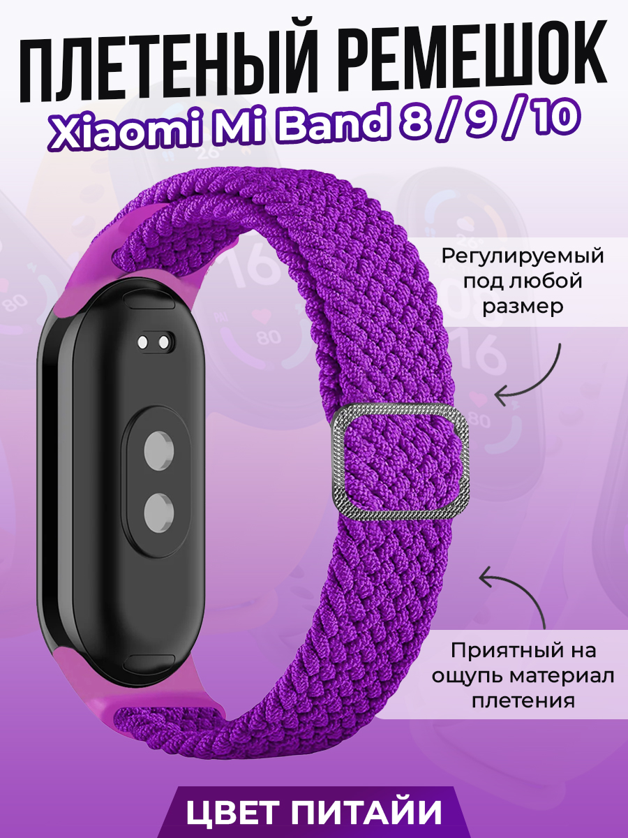 Плетеный ремешок для Xiaomi Mi Band 8/9/10, регулируемый под любой размер. Ремешок для часов Xiaomi выполнен из гипоаллергенного нейлона.