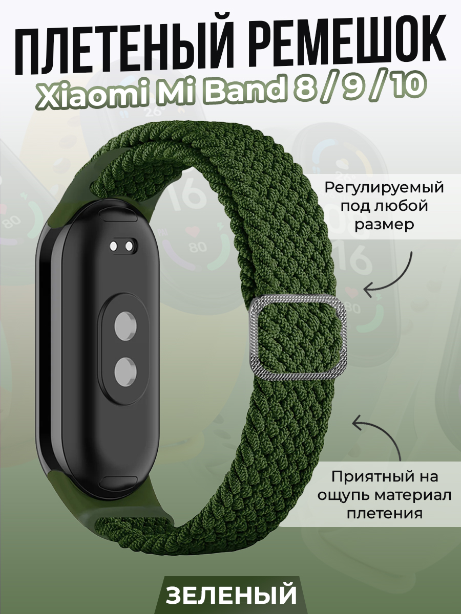 Плетеный ремешок для Xiaomi Mi Band 8/9/10, регулируемый под любой размер, зеленый