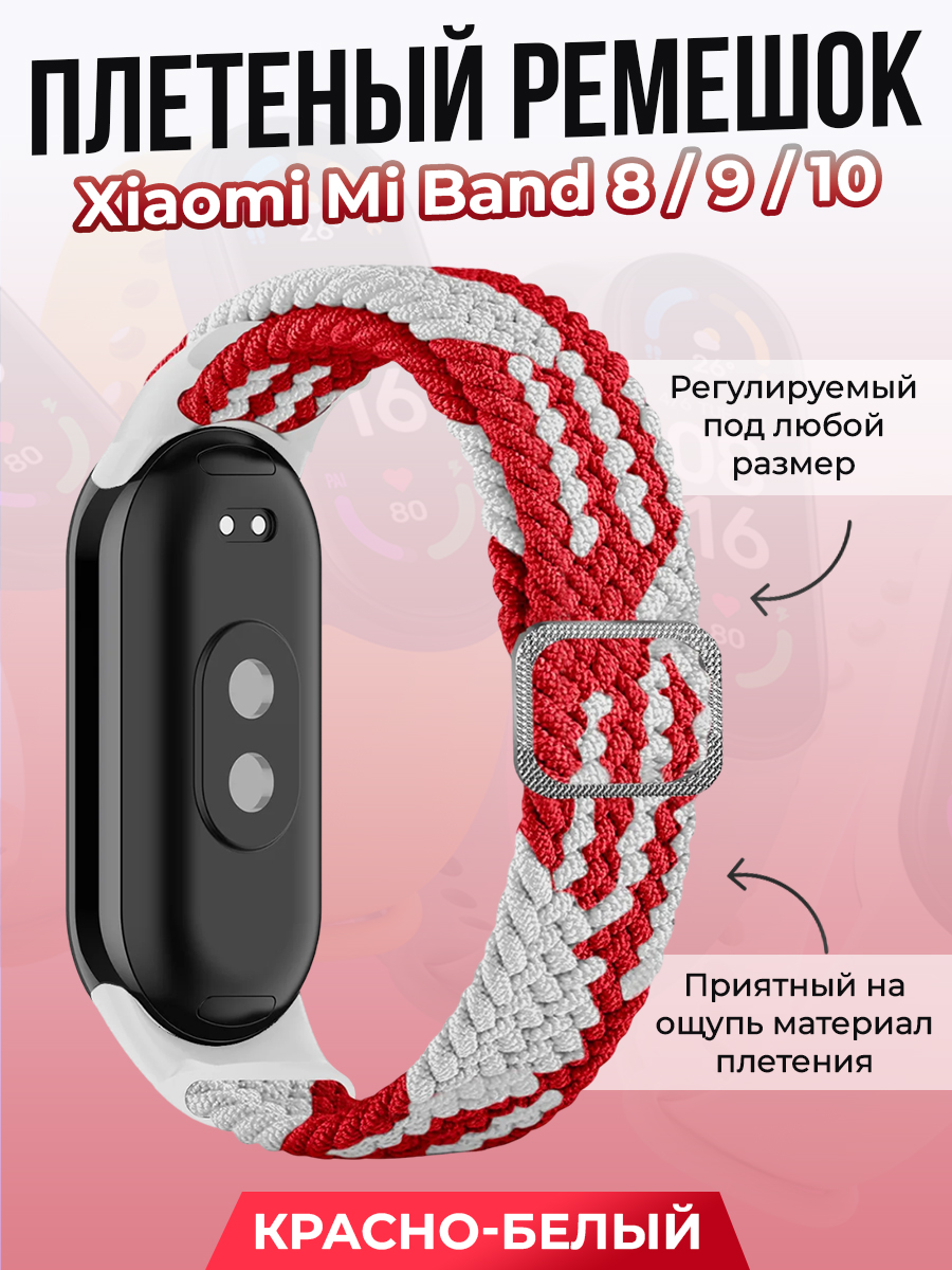 Плетеный ремешок для Xiaomi Mi Band 8/9/10, регулируемый под любой размер, красно-белый
