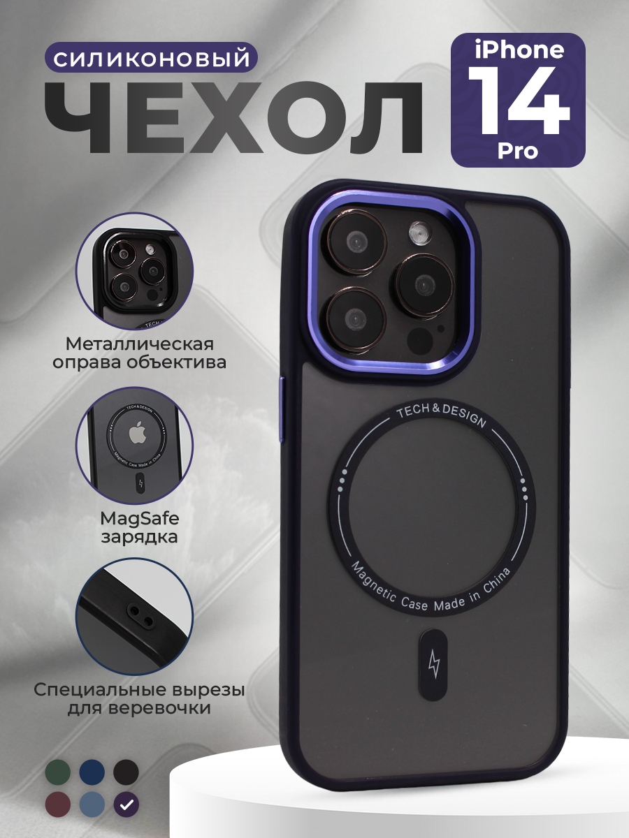 Защитный чехол с металлической оправой объектива для iPhone 14 Pro, MagSafe, темно-фиолетовый