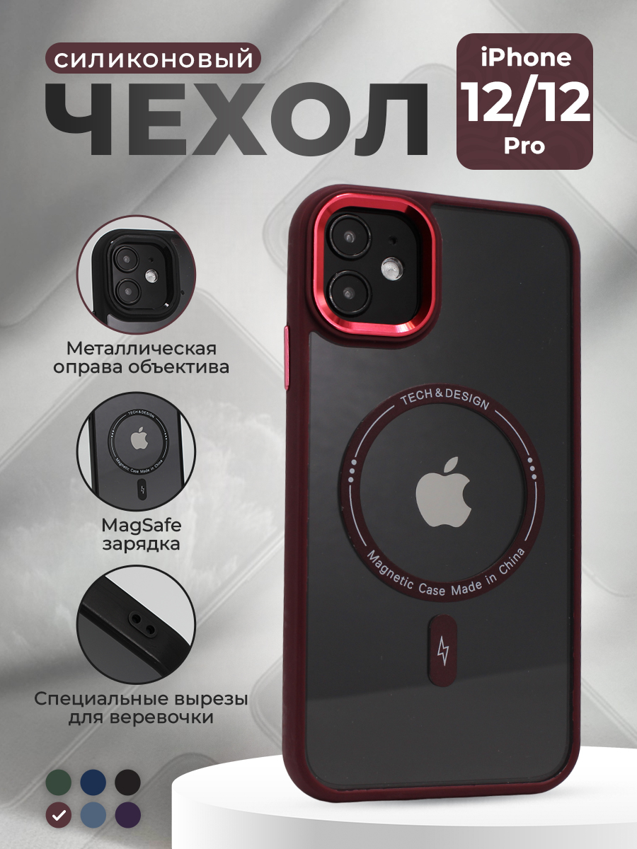 Защитный чехол с металлической оправой объектива для iPhone 12/12 Pro, MagSafe, винно-красный