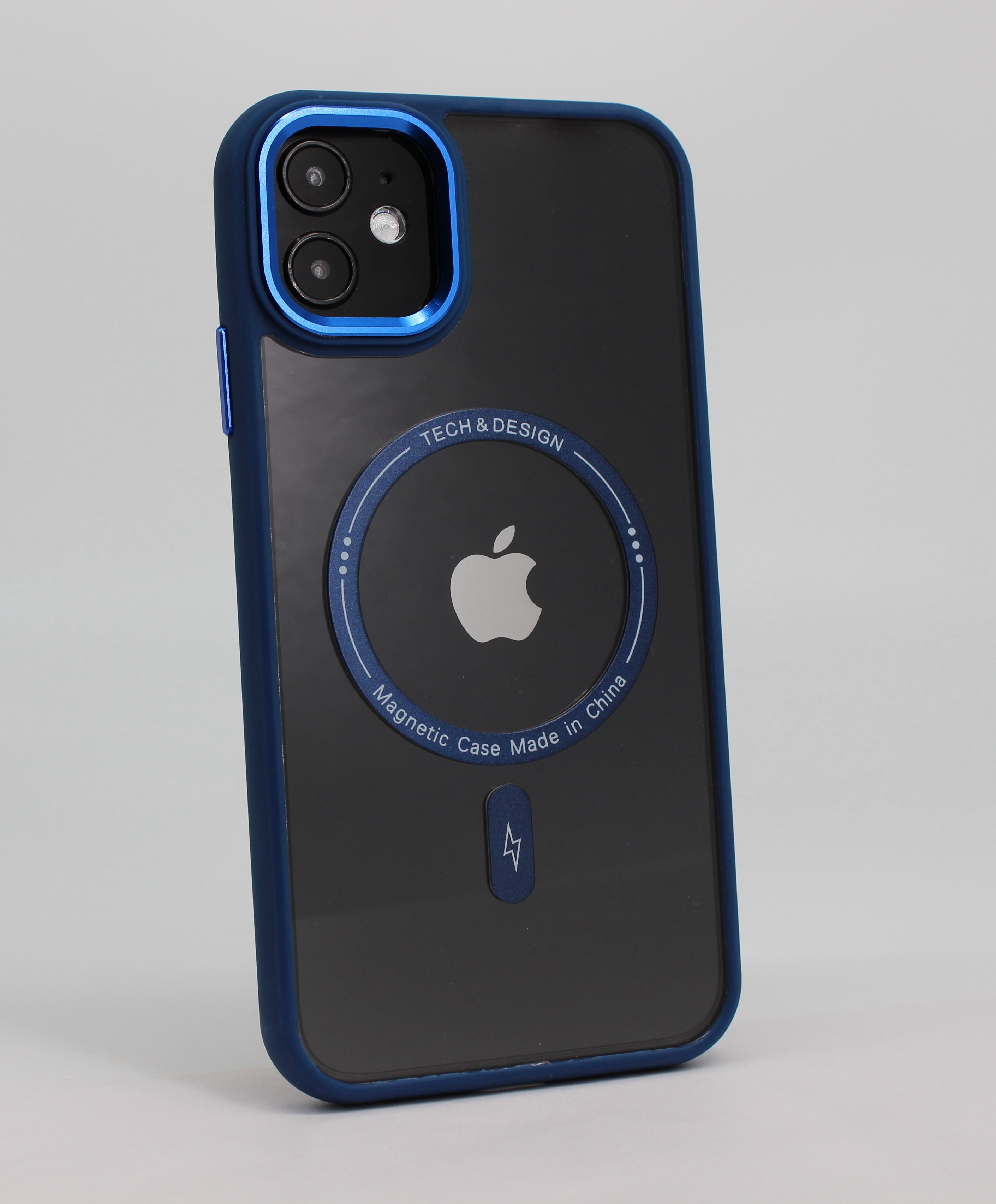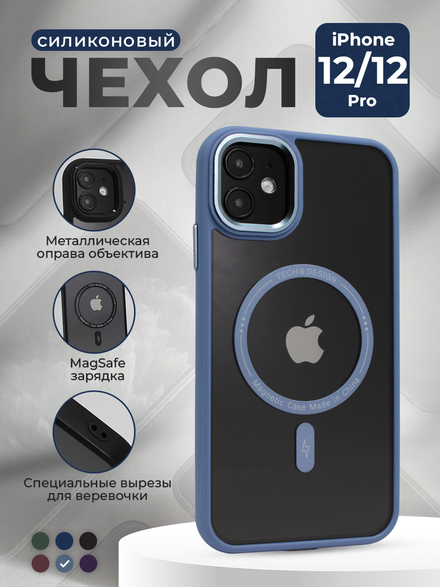 Защитный чехол с металлической оправой объектива для iPhone 12/12 Pro, MagSafe, серо-синий