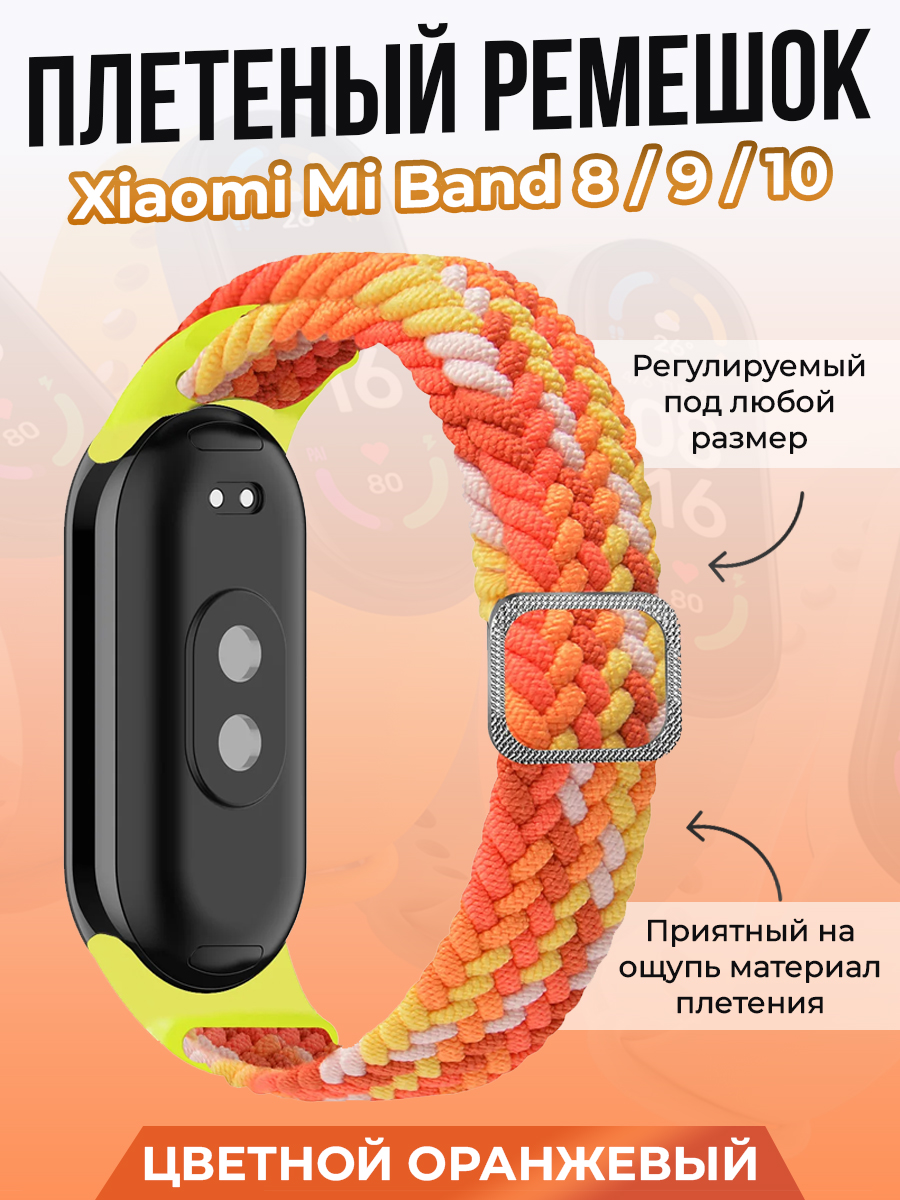Плетеный ремешок для Xiaomi Mi Band 8/9/10, регулируемый под любой размер, цветной оранжевый