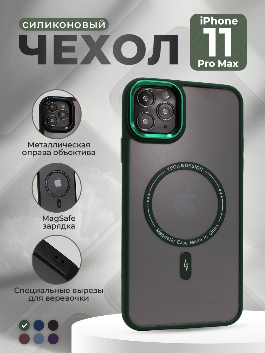 Защитный чехол с металлической оправой объектива для iPhone 11 Pro Max, MagSafe, зеленый