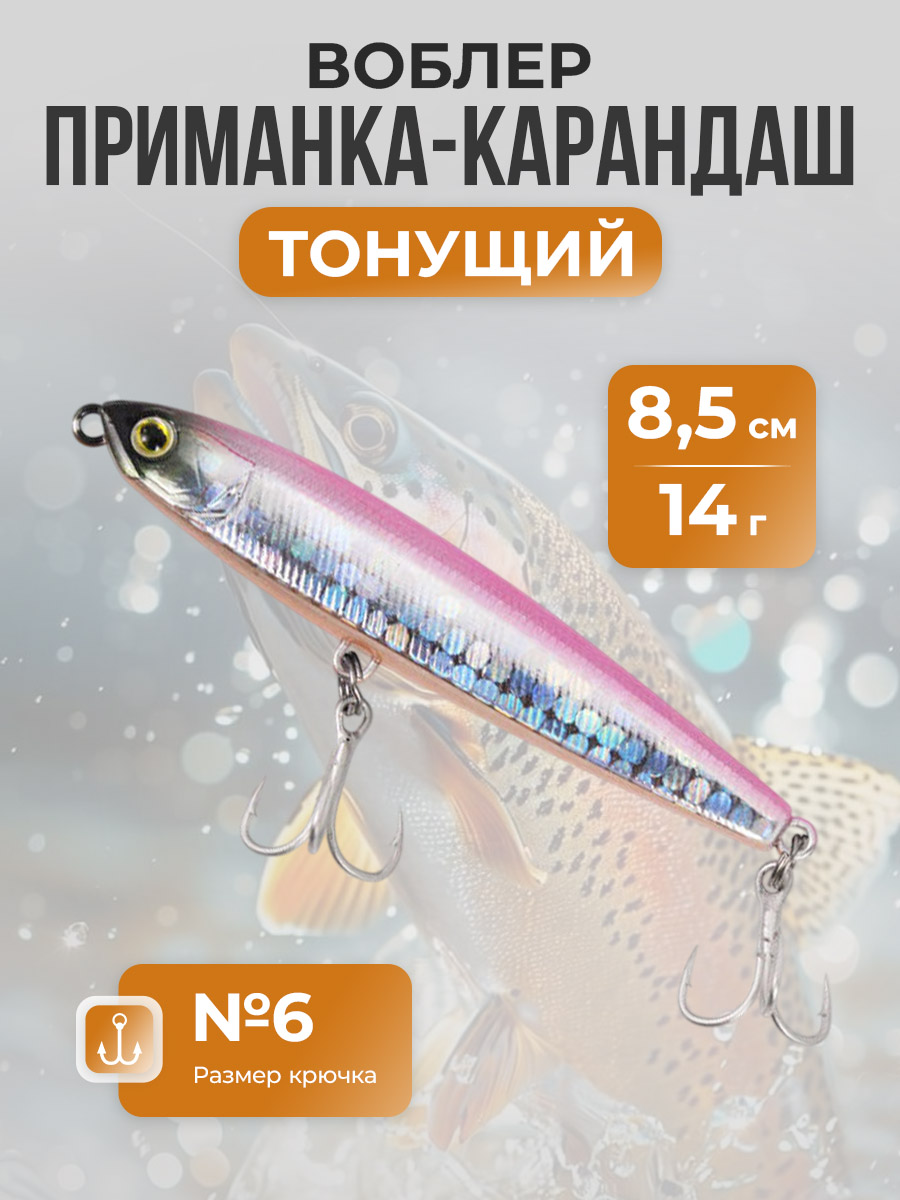 Воблер приманка-карандаш, тонущая, с системой гравитационной передачи 8,5 см/14 г, розово-черная