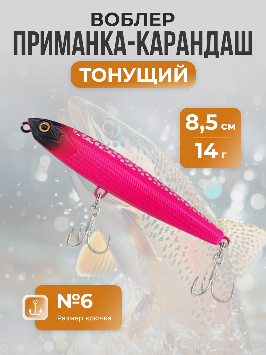 Воблер приманка-карандаш, тонущая, с системой гравитационной передачи 8,5 см/14 г, розовая