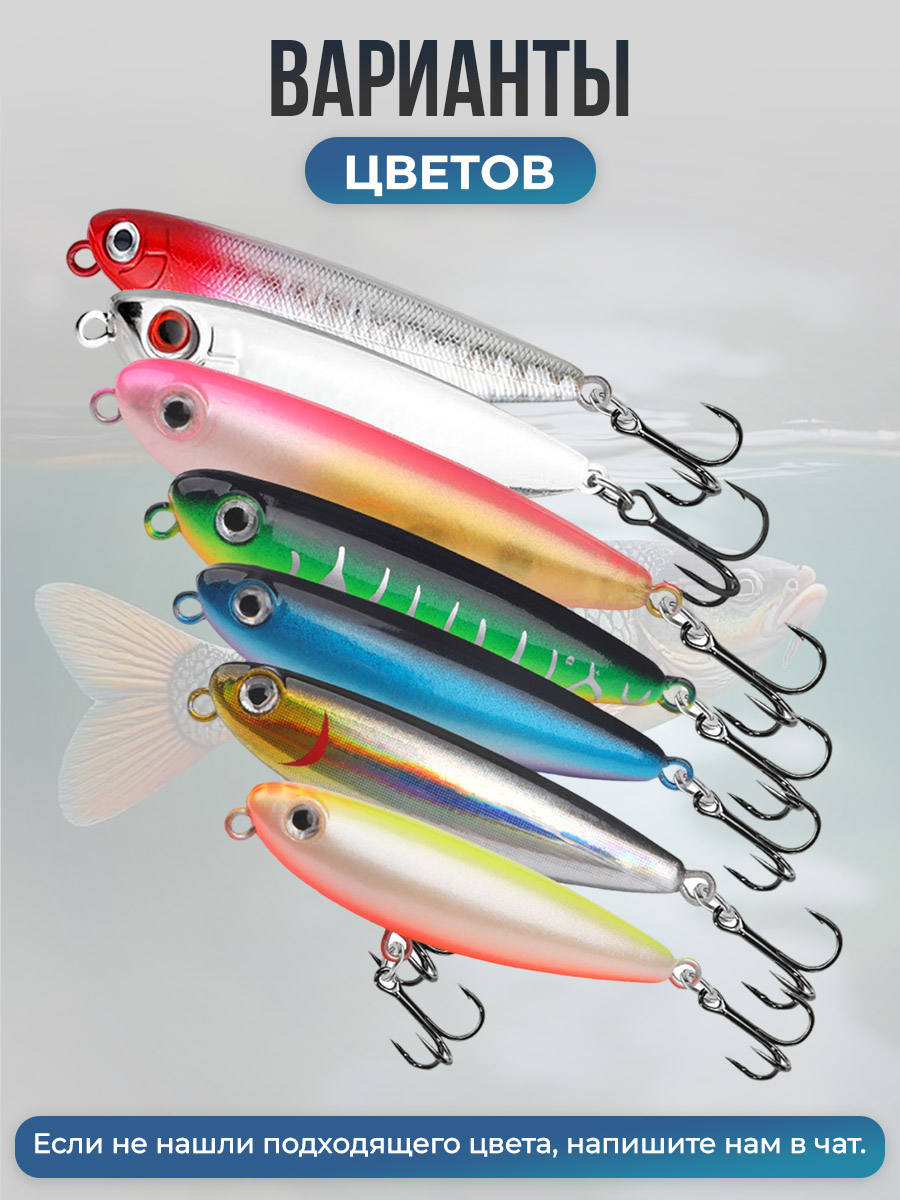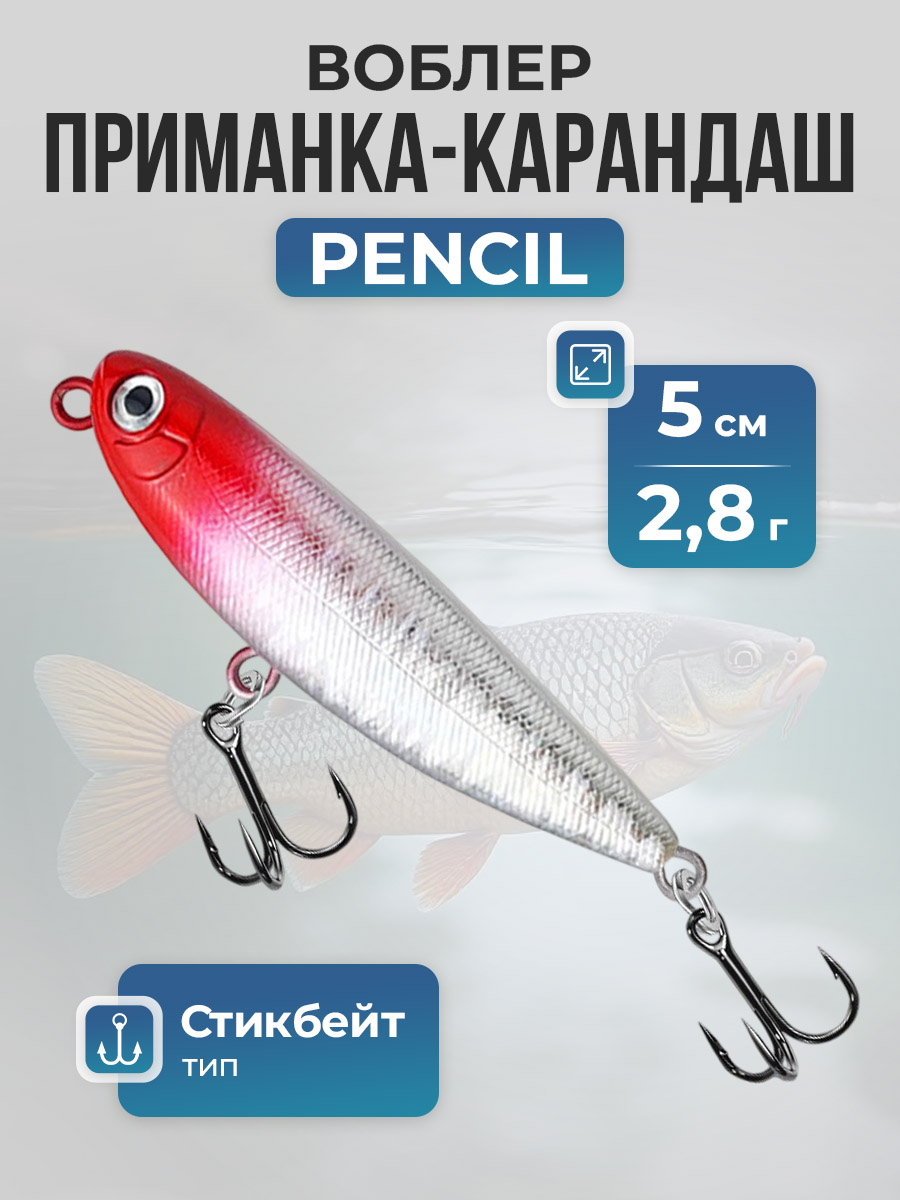 Плавающий воблер-карандаш Pencil / Стикбейт (Stickbait), весом всего 2,8 грамма при длине 5 сантиметров, представляет собой компактное, но необычайно эффективное оружие в арсенале рыболова. Воблер чаще всего используются для активного хищника, который охотится в верхних слоях воды. Он подходит для: окуня, жереха, голавали, язя. А также для форели (на спокойных участках, если провоцировать поверхностную атаку) и мелкой щуки. Поскольку приманка плавающая, то на поверхности она играет "змейкой". А на максимальной рабочей глубине 10-30 см делает более резкие рывки.