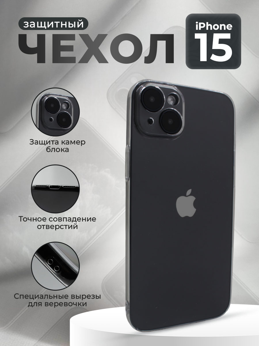 Жесткий защитный чехол с вырезом под камеру для iPhone 15, прозрачный