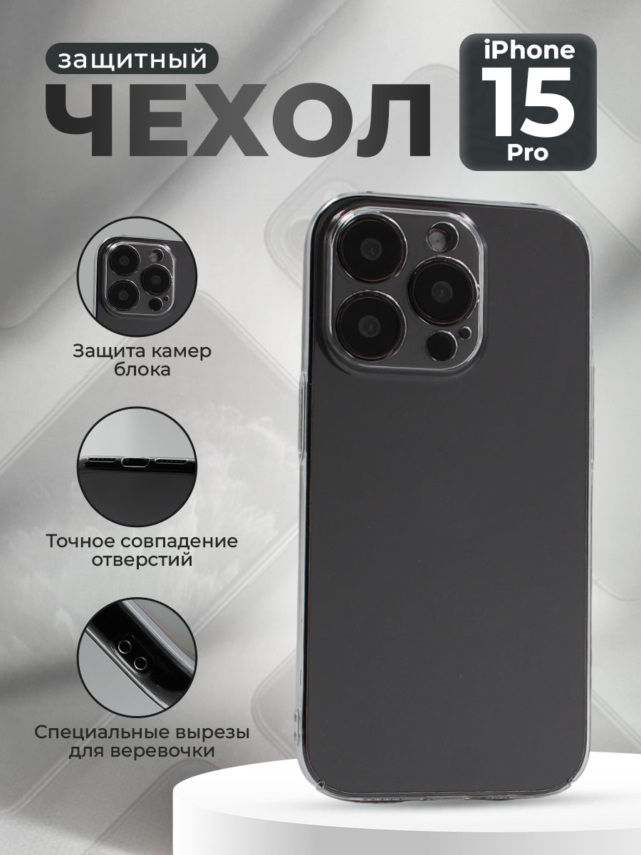 Жесткий защитный чехол с вырезом под камеру для iPhone 15 Pro, прозрачный