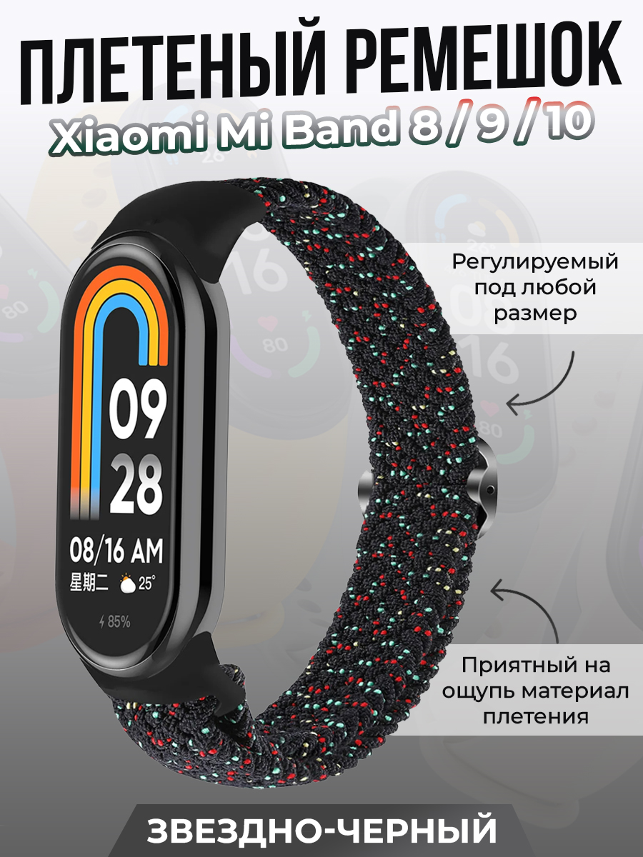 Плетеный ремешок для Xiaomi Mi Band 8/9/10, регулируемый под любой размер, звездно-черный