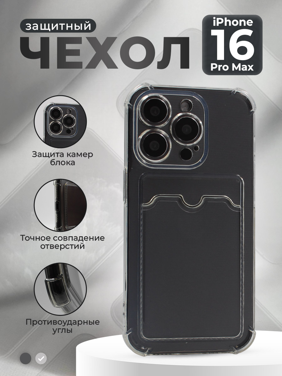 Противоударный чехол с картхолдером для iPhone 16 Pro Max, прозрачный