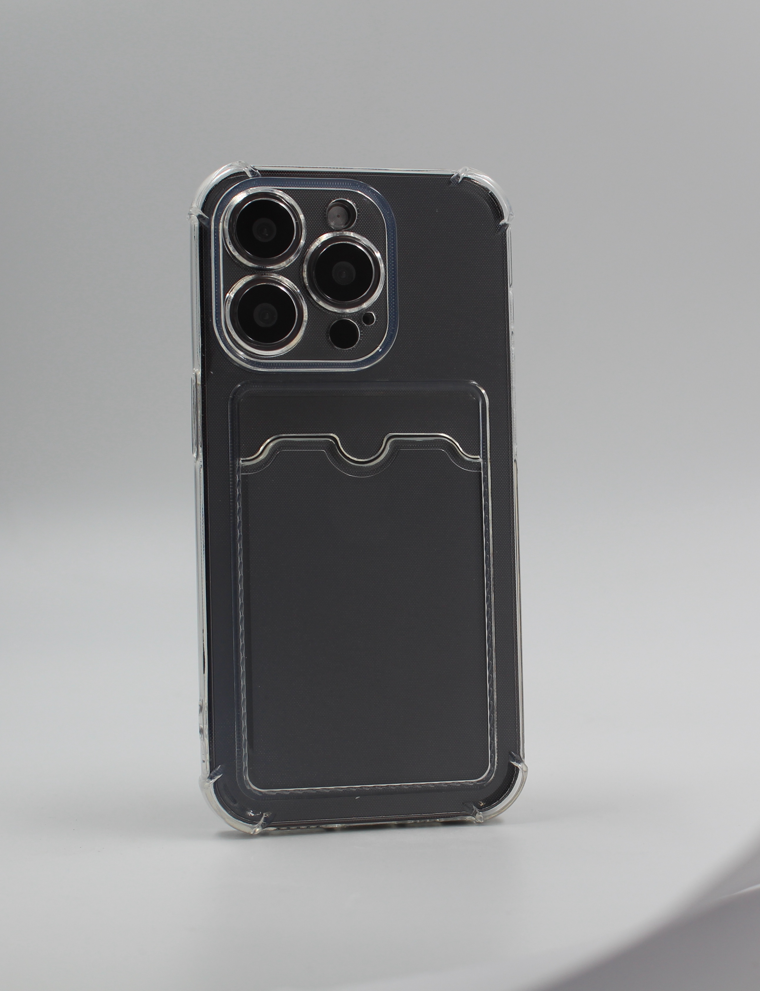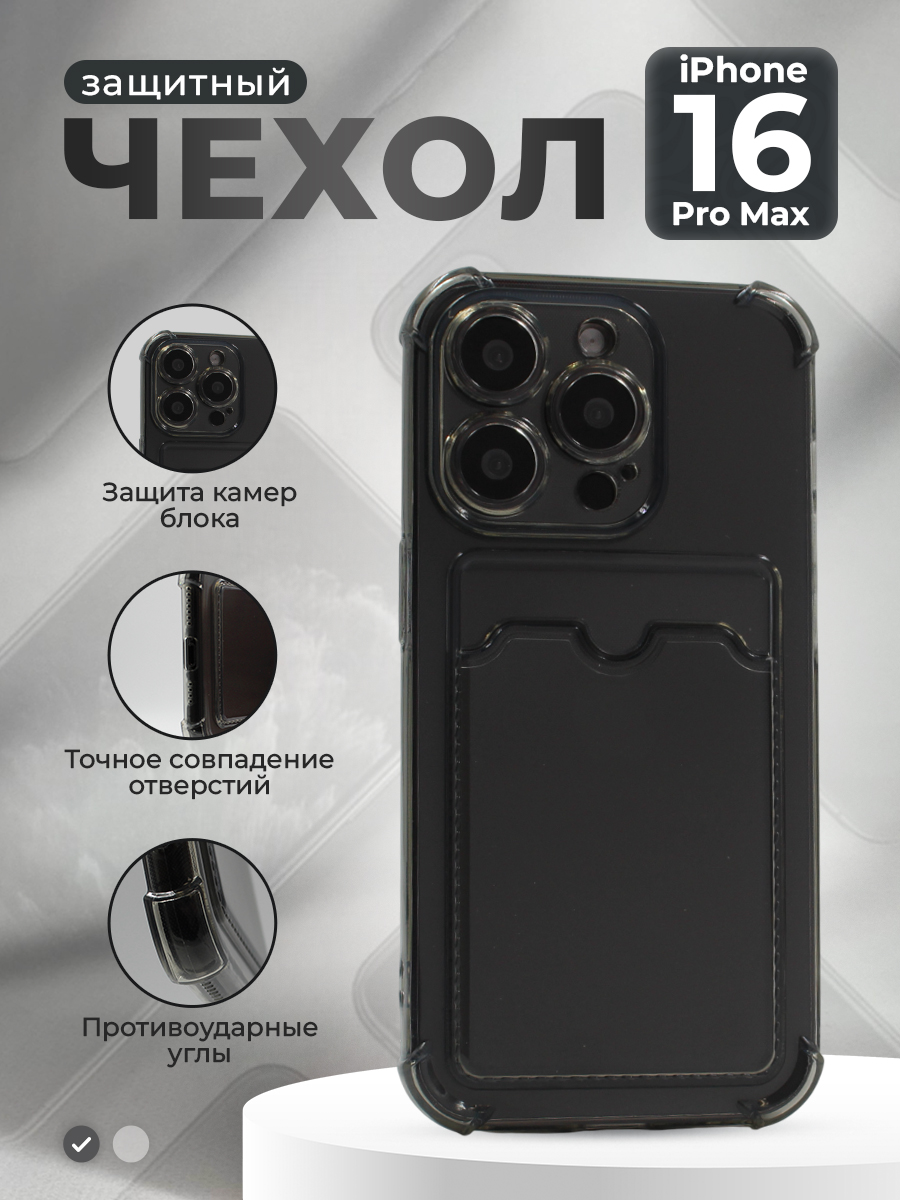 Противоударный чехол с картхолдером для iPhone 16 Pro Max, прозрачный-черный