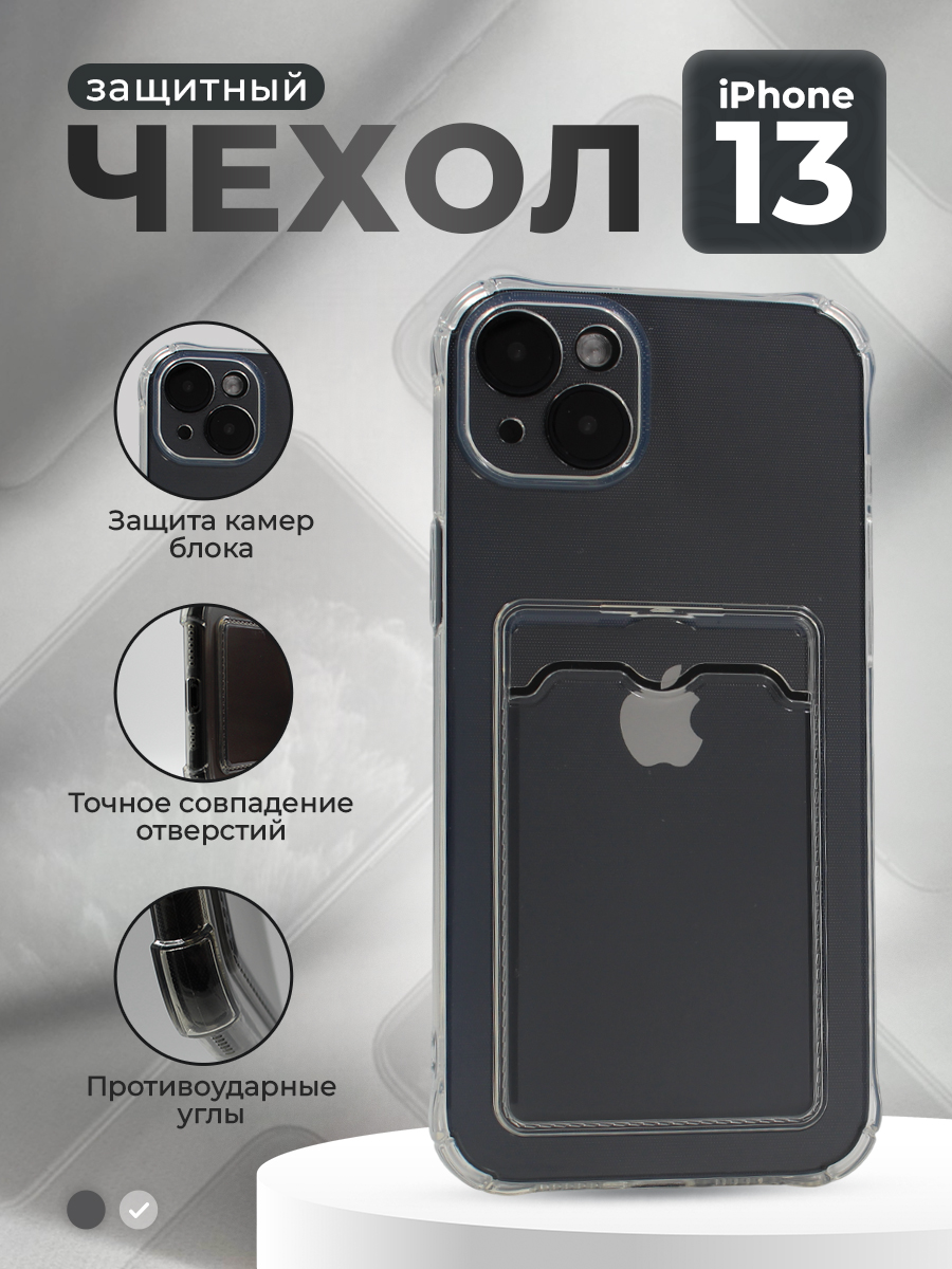 Противоударный чехол с картхолдером для iPhone 13, прозрачный