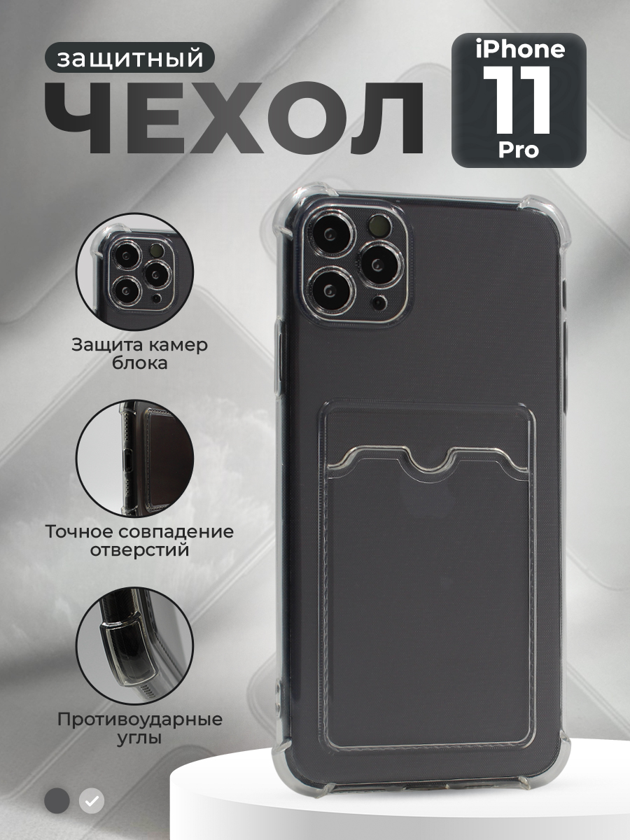 Противоударный чехол с картхолдером для iPhone 11 Pro, прозрачный