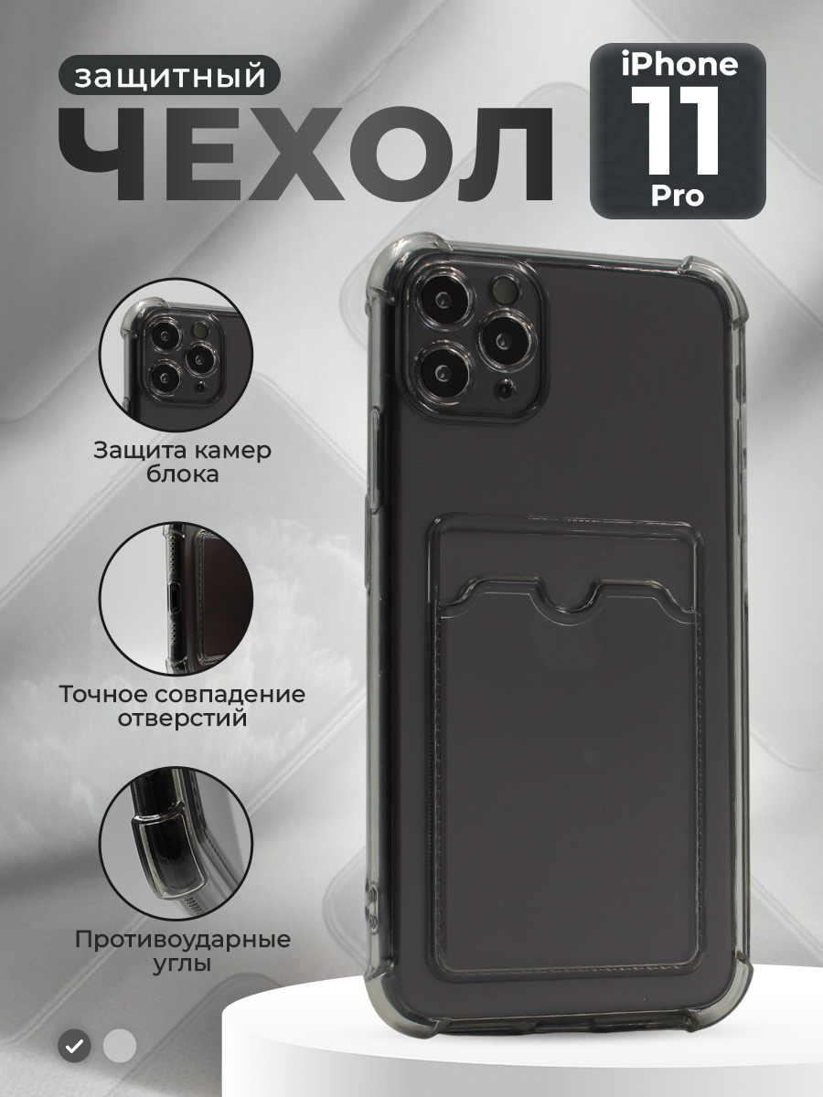 Противоударный чехол с картхолдером для iPhone 11 Pro, прозрачный-черный