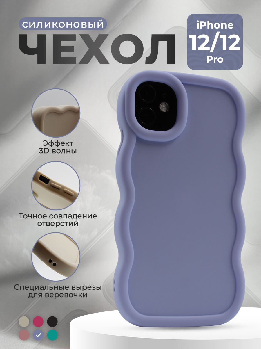 Мягкий чехол с большой волной для iPhone 12 / 12 Pro, светло-фиолетовый