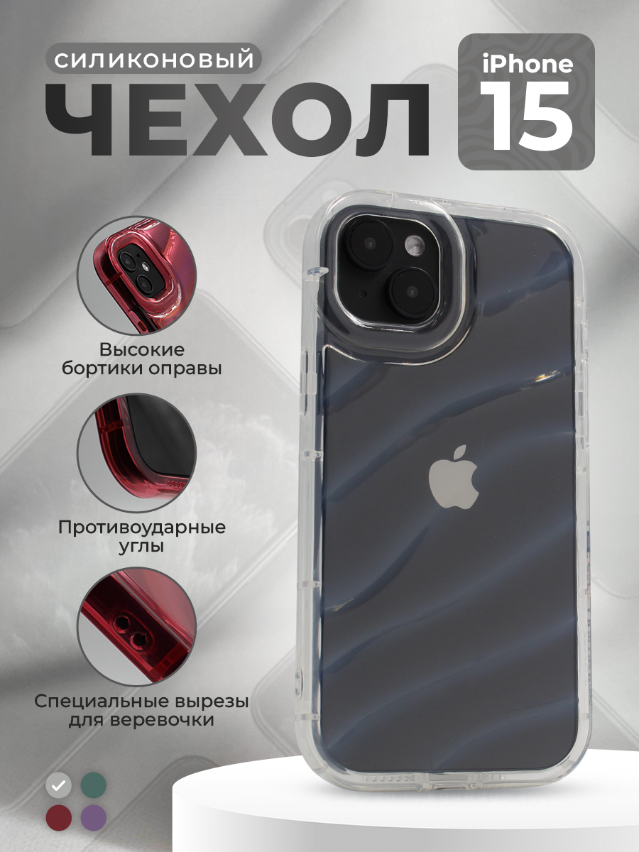 Силиконовый чехол с 3D эффектом волны для iPhone 15, прозрачный