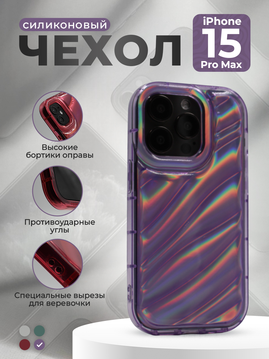 Силиконовый чехол с лазерным 3D эффектом волны для iPhone 15 Pro Max, прозрачный-фиолетовый