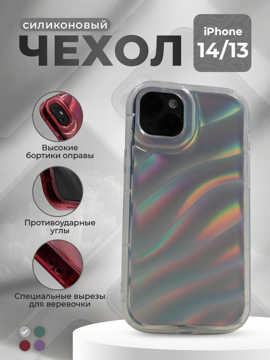 Откройте для себя идеальное сочетание стиля и защиты с нашим силиконовым чехлом с лазерным 3D эффектом волны, специально созданным для iPhone 14/13. Этот чехол не только подчеркнёт элегантность вашего устройства, но и обеспечит надёжную защиту от ударов и царапин.