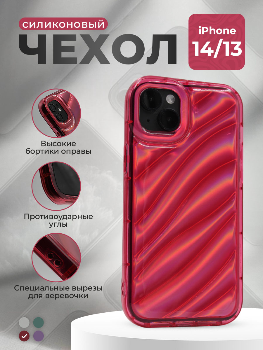 Силиконовый чехол с лазерным 3D эффектом волны для iPhone 14/13, прозрачный-розово-красный