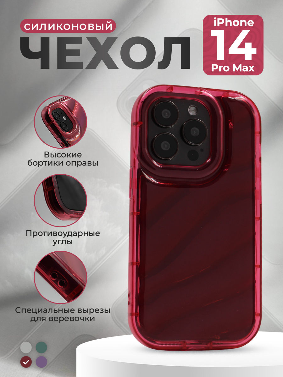 Силиконовый чехол с 3D эффектом волны для iPhone 14 Pro Max, прозрачный-розово-красный