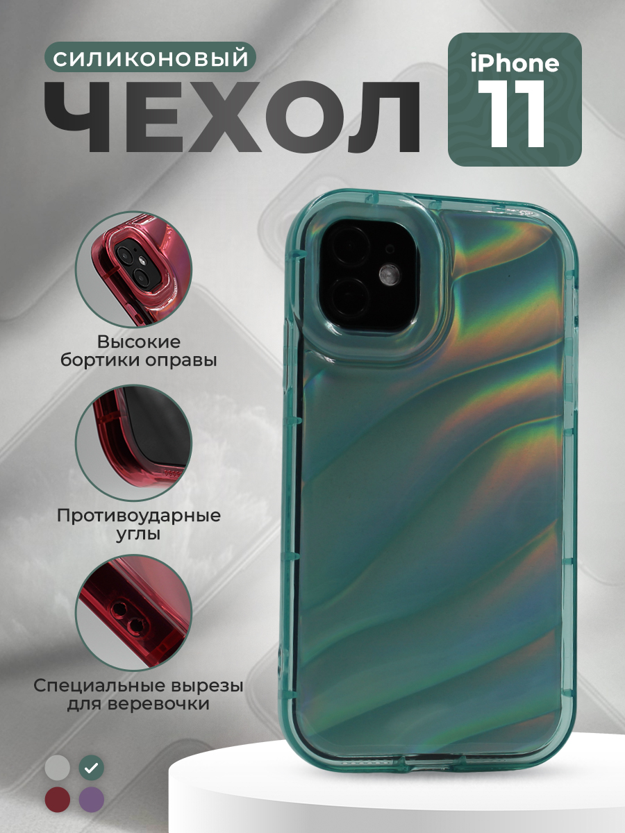 Силиконовый чехол с лазерным 3D эффектом волны для iPhone 11, прозрачно-бирюзовый